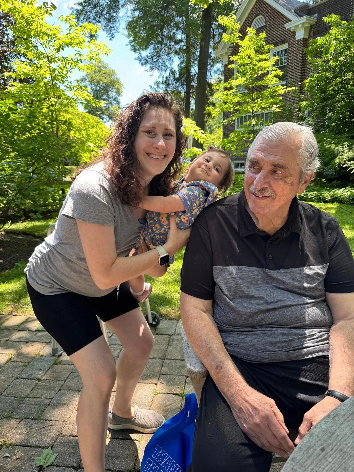 Bryan meeting his grandnephew Easy Jack Cohen, April 2025 Judd on right
