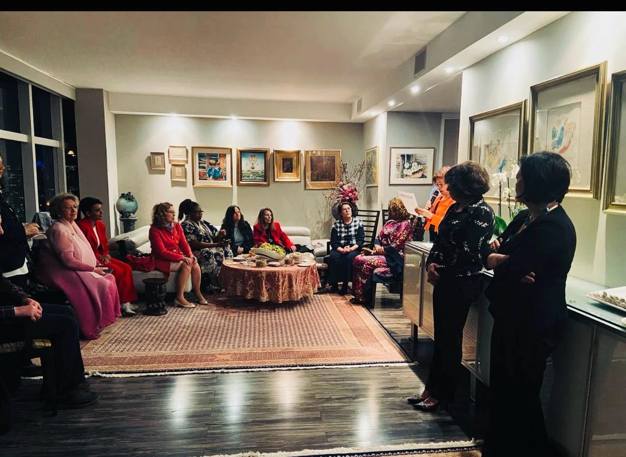 Sorosh Roshan, M.D. - right, speaks at 2024 IHAN meeting in New York City. Sharon is seated - center